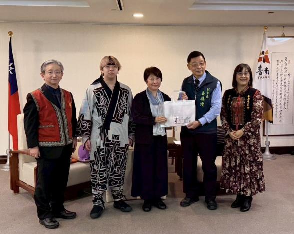 日本札幌大學參訪團今(2)日上午拜會臺南市政府,由姜淋煌副市長及臺南市政府原住民族事務委員會主任委員白惠蘭(Salau Kaljimuran)共同接待。來訪成員包括札幌大學本田優子教授、岡田勇樹老師,以及曾任臺灣基督長老教會日籍宣教師的二宮一朗牧師,率「Urespa-Club」參訪團蒞府交流。雙方就西拉雅族正名運動歷程、地方政府支持角色及原住民族政策發展等議題進行深入對話。