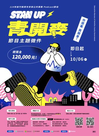 【轉知】新竹縣政府辦理「114年度新竹縣青年參與公共事務計畫-Stan up!青開麥」即日起開放徵件