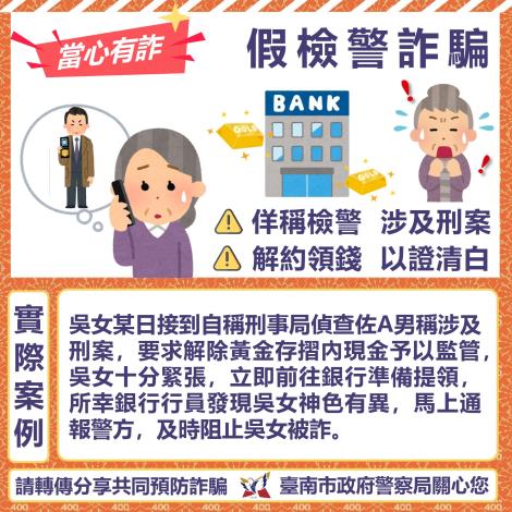 分享兩項「假投資詐騙」及「假檢警詐騙」之新型詐騙手法,手法詳如附圖。