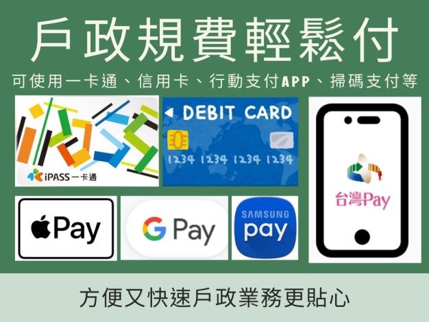 可使用一卡通、信用卡、行動支付APP繳納戶政規費