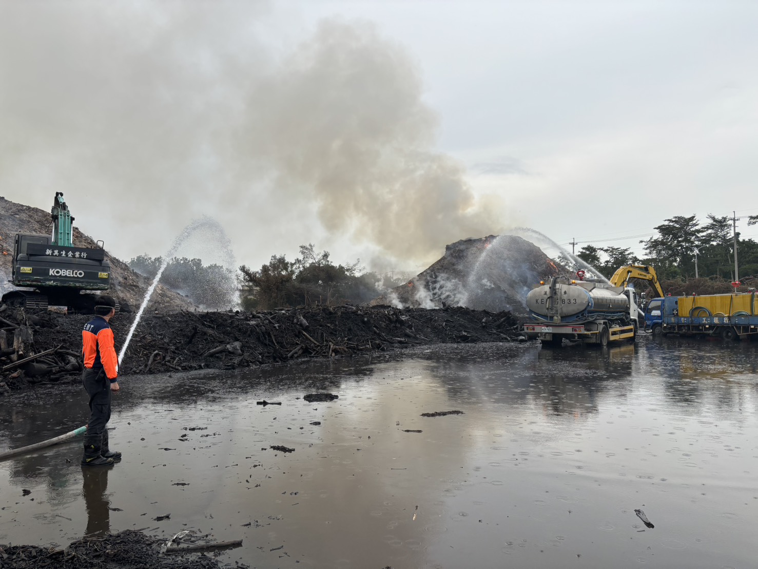 臺南市後壁區烏樹林風災廢棄物暫置場火警持續處理中,市府今日(27 日)公布最新進度。現場燃燒區域持續 ...更多