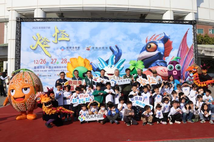 由行政院客家委員會攜手紙風車劇團全新打造的2025客家親子劇《燈怪》,將於12月26日至28日連續三天、每晚7時,在台南市安平區安億路路外停車場盛大演出。台南市政府今(17)日於永華市政中心舉辦宣傳記者會,市長黃偉哲親自出席推薦,邀請市民朋友前來安平「打怪」,一同感受奇幻又溫暖的客家文化魅力。