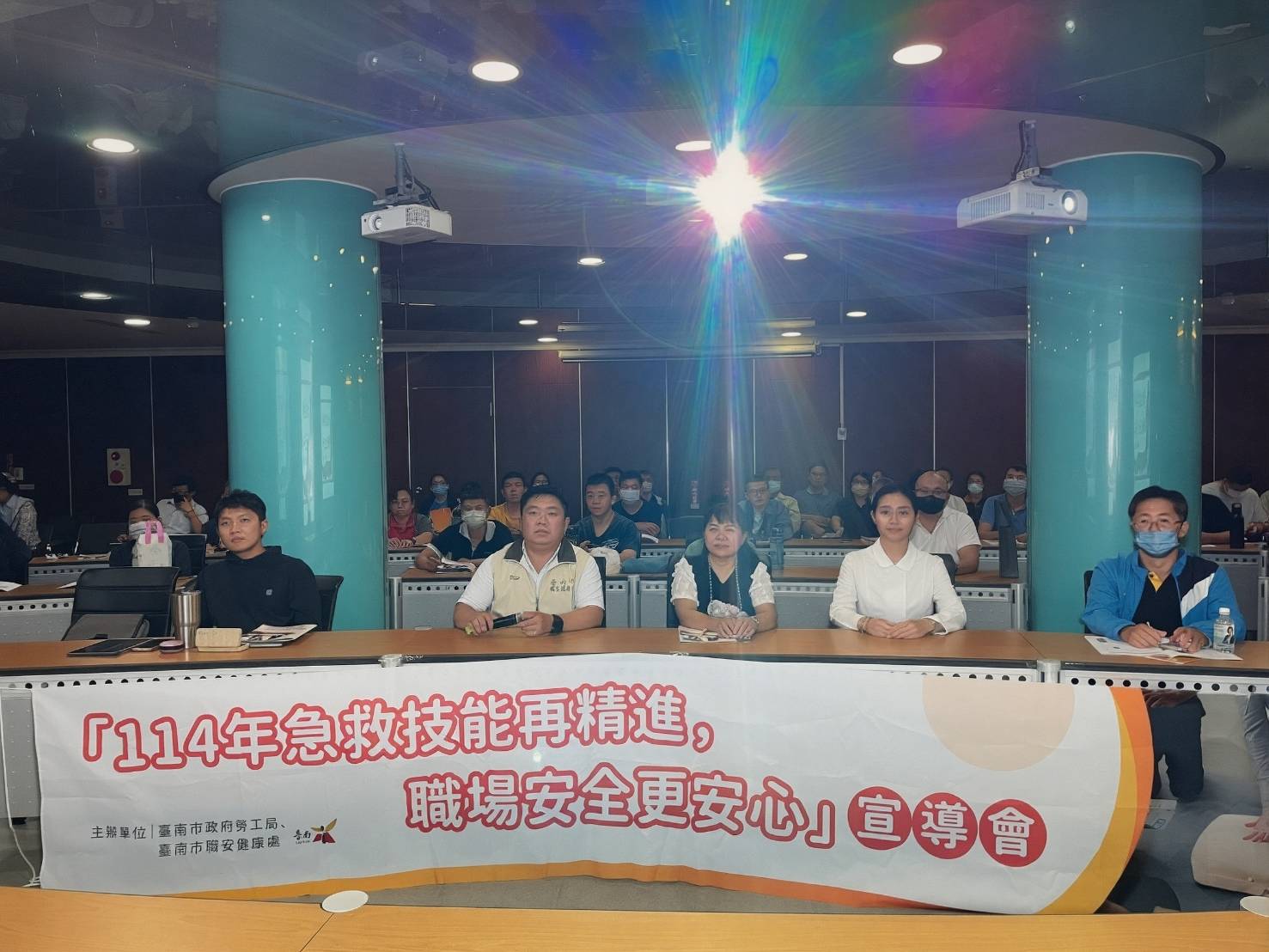 為精進事業單位急救人員應變與救護能力,南市政府勞工局今(10/8)於經濟部新營產業園區服務中心B1會議廳舉辦「急救技能再精進,職場安全更安心」急救人員安全衛生在職教育訓練宣導會,邀請許芮榕護理師授課,透過案例解析與耐心指導實務演練,加深與會人員操作印象,藉此保障勞工職場安全,落實市長黃偉哲推動「 ...更多
