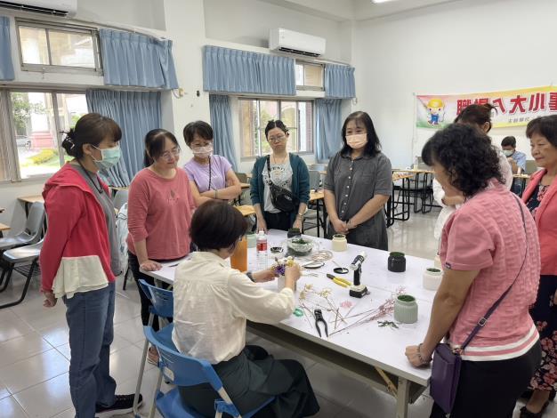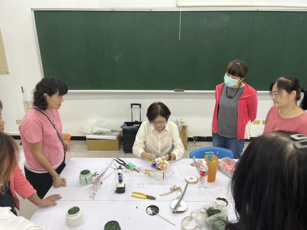 蔡玉娟老師除為艾華植藝工作室創辦人外,亦為財團法人中華花藝研究推廣基金會雲嘉南地區指定教室專業講師,長年致力於花藝推廣與教學,經驗豐富、熱忱十足。她在課堂中指出,隨著社會與經濟發展日益成熟,民眾對美感生活的需求也逐漸提升。學習花藝不僅能紓解生活壓力、增添日常樂趣,亦能促進同好交流。課後將親手完成的作品妝點居家環境,不僅讓自己心情愉悅,也能與家人共享這份美好。