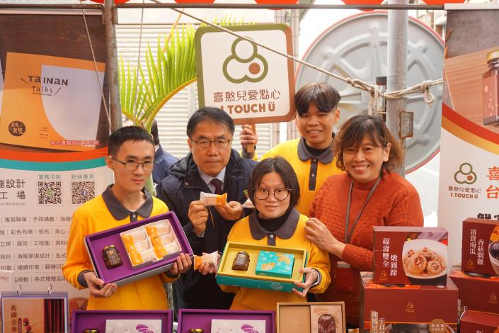 黃市長進一步提到,今年年節禮的6道經典年菜,全由通過ISO 22000及HACCP食品安全雙認證的喜憨兒台南庇護工場,以最嚴謹流程及最高規格製作,其中「珠圓玉潤慶團圓」這道年菜,是喜憨兒台南庇護工場與錦霞樓(阿霞飯店二代) 技術合作聯名推出的必買年菜,以豬蹄膀熱油煎至香氣散出,加入醬油、冰糖煨煮至入口即化,吃起來富含膠質、香Q彈牙、軟嫩多汁,新品有「龍吟虎饗石斑魚」選鮮甜石斑,以樹子清香襯托鮮嫩魚肉,不過度烹調的清爽無負擔,象徵年年有餘喜氣滿盈、「金饗富貴大肋排」厚實肋排以特製醬汁醃製,掌握黃金時間烤出嫩口美味、「開運椒香雞湯鍋」雞腿肉搭配剝皮辣椒慢火熬煮,湯頭清甜帶微辣層次;此外因應蔬食者增多,喜憨兒也有蔬食組合,其中「福祿吉祥蔬食油飯」台式傳統口味,新春吃油飯討個好兆頭。從主菜到甜品一應俱全,滿足全家年節餐桌一次到位的美味需求,免料理即可輕鬆端上桌,享受圍爐的幸福滋味,即日起至115年2月2日止,年菜單品預購3盒95折,5盒以上88折,欲購從速。