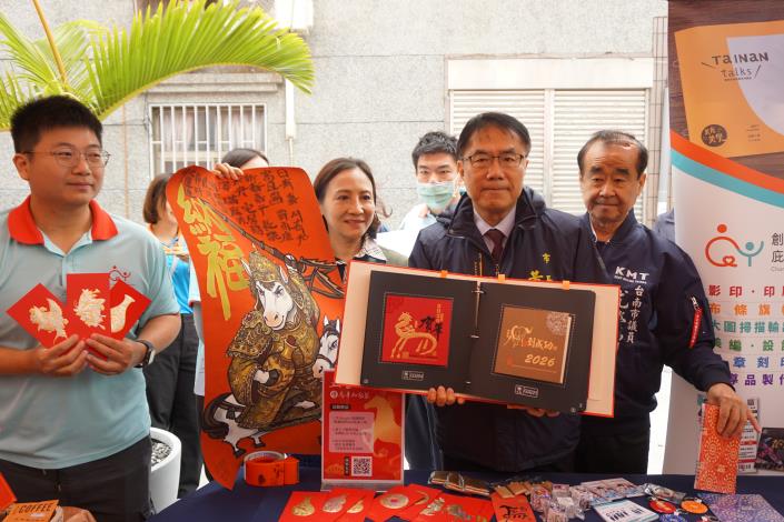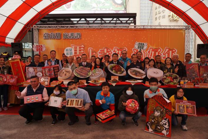 迎接新曆開端與農曆歲末的交替之際,市政府勞工局於今(7)日辦理「馬上幸福過好年—台南庇護年節禮」行銷記者會。因應即將到來的金馬年,市府攜手轄內7家庇護工場,推出多款精美年節禮盒與開運年菜。台南市長黃偉哲、勞動部勞動力發展署雲嘉南分署許慧香副分署長及五大總工會代表皆親自出席,共同守護弱勢就業,呼籲社會大眾以實際行動訂購支持,傳遞溫暖與愛。