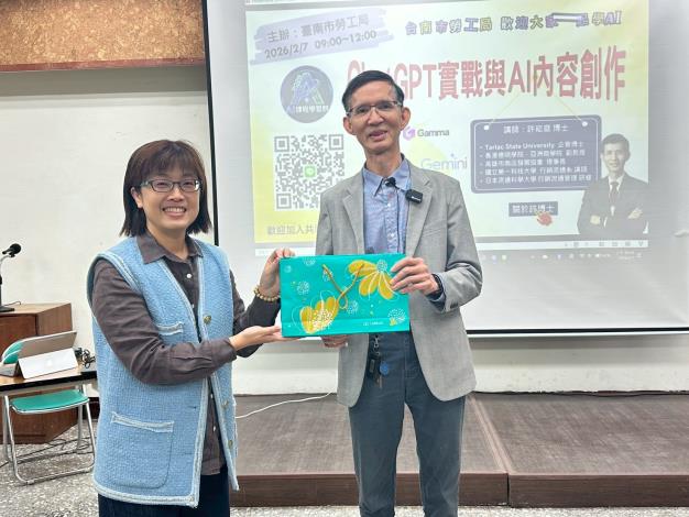 市府勞工局倡導勞工及市民朋友培養良好學習風氣,鼓勵自主學習,為協助勞工朋友因應數位轉型與AI浪潮,跟上新興科技趨勢,提升職場競爭力,規劃一系列AI主題課程,今(2/7)日辦理第二堂課程,同樣邀請許崧庭博士授課,主題聚焦於「ChatGPT 實戰與 AI 內容創作」,除了深入淺出的進行ChatGPT介紹,更將帶領學員進行多項「生成實例操作」,讓學員做到「實作演練」,能真正學會使用ChatGPT等AI相關工具,落實黃偉哲市長打造臺南成為「希望家園」的施政理念。