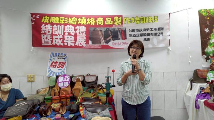 臺南市政府勞工局王鑫基局長表示,感謝訊亞企業股份有公司辦理身心障礙者職業訓練對身障者的付出與投入,特別是為身障者提供學習皮革商品工藝技術的培訓環境與機會,展現了深厚的社會關懷。感恩學員們願意克服困難踏出家門來接受職業訓練培訓。皮件工藝技術需要高度的手眼協調與細緻操作,透過本次訓練,讓學員在提升職能的同時,也學習自我突破與創造力的發展。