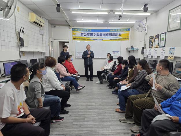 勞工局局長王鑫基表示,為使身心障礙者習得一技之長自力更生,每年致力推動辦理身心障礙者職業訓練,秉持「給魚吃不如教他釣魚」的理念,透過開辦各類身心障礙者職業訓練專班,協助學員建立自信心,培養專業技能,進而創造自我價值尊嚴立足於社會。期盼身心障礙朋友能藉由職業訓練習得實用的電腦資訊能力,發揮就業潛能,學以致用,順利就業。 群偉公司專業團隊指出,針對身心障礙失業者設計「辦公室圖文與雲端應用培訓班」課程,在基礎上先奠定良好OFFICE軟體基礎,協助學員取得相關證照。於進階課程上,結合美工影像設計,教導學員製作美化各式辦公室文書圖表,同時運用網路社群、雲端工具及AI輔助應用課程,培養學員多元資訊處理與美編能力,期開發學員的工作潛能,進而提升求職成功的機率,成為新時代的辦公室達人。