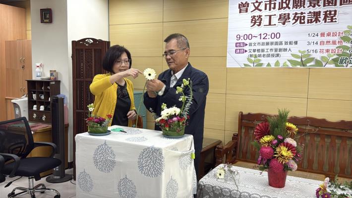 勞工局王鑫基局長表示,曾文市政願景園區開設的勞工學苑課程,除靜態講座外,也特別加入動態與手作類型課程,透過實際操作,提升勞工朋友的生活美感與紓壓體驗,讓學習更加貼近生活。今年首場手作花藝課程「餐桌設計」,將於1月24日(星期六)登場,特別邀請艾華植藝工作室創辦人蔡玉娟老師親自授課,帶領學員從花材搭配、色彩運用到整體設計概念,打造兼具美感與實用性的餐桌佈置,為日常生活增添儀式感。課程開放勞工朋友及其眷屬報名參加,名額有限,歡迎踴躍報名。