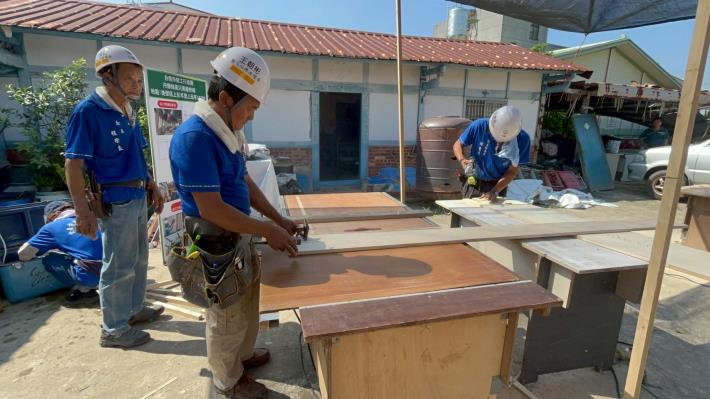 臺南市勞工局做工行善團行「繕」不分節慶日,在屬於家人團圓的日子裡,仍繼續賣力為弱勢族群修屋,與弱勢共度中秋。今日(10/5)木工工會及電氣工會,兵分多路前往後壁區上茄苳及菁寮後廍進行修繕,二手倉庫則有志願協會志工協助整理搬運,再由木工運送家具贈送案家,餐飲工會也至修繕現場提供熱騰騰的中餐,為志工們的辛勞鼓勵打氣。志工們秉持著黃偉哲市長最暖心的「希望家園」施政理念一起打拼,為給予弱勢族群擁有遮風避雨家園的使命努力著,也為今年的中秋佳節賦予非凡的意義。財團法人職業災害預防及重建中心執行長李柏昌及副處長范南鵬今天代表勞動部長洪申翰慰問志工,特別感謝做工行善團隊中秋連假還出勤幫助弱勢家庭修復家園,也贈送護目鏡、口罩等護具給志工,促進作業安全。