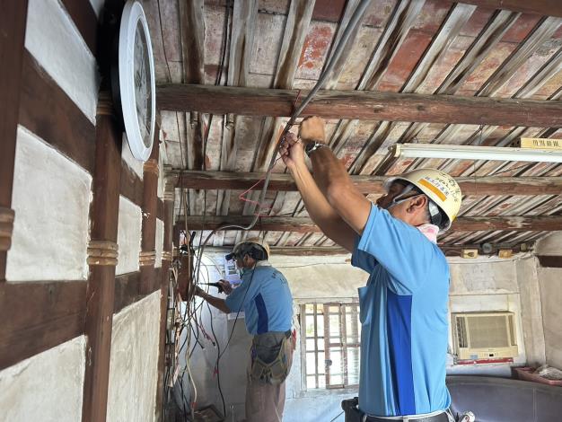 鹽水區陳姓案主與丈夫扶養3名子女,案主從事家庭手工,案丈夫從事挖土機作業臨時工,每月收入不穩,依靠補助過生活。案主房屋因今年7月丹娜絲風災肆虐受損,無法負擔修繕費用,做工行善團志工於10月31日前往會勘並安排後續修繕期程。今日電氣工會志工前往鹽水區進行斷電作業並配置臨時用電,以利後續施工作業更順利。