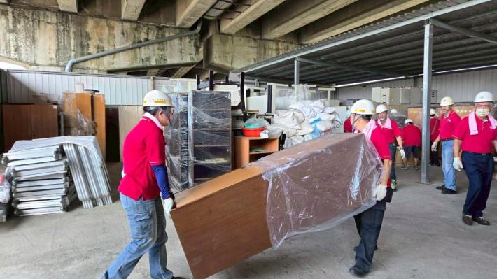 另外,今日社團法人台南市勞工志願服務協會志工至官田區二手家具倉庫進行家具封膜作業,志工們彎著腰,先將家具擦拭乾淨,再小心翼翼地拉開長長的封膜,將透明的塑膠膜緊密貼合在桌椅、櫃體的每一個角落,以便妥善保存,這些自各界捐贈的愛心家具,日後將贈送給有需要的弱勢家庭。二手家具倉庫也是做工行善團志工讓二手家具重生的修復基地,為了確保志工團隊日後作業順暢,電氣志工也至現場檢修電路,為這條愛心供應鏈提供了堅實的後勤保障。