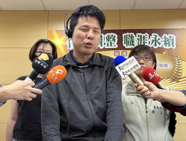 王鑫基進一步表示,身心障礙者要順利就業,相較一般勞工而言更為困難,需要透過公私協力進行合理調整,勞工局近三年來共提供517件職務再設計補助,金額總計超過887萬元,協助企業購置輔具、調整工作流程、改善工作環境等,打造適合身心障礙者的就業職場。今(11)日記者會更特別邀請雲嘉南區職務再設計專員王櫛椀出席,介紹如何運用各類輔具進行合理調整,協助身心障礙者在職場上克服障礙;曾接受此項服務的視障者小彥(化名),也現身分享透過勞工局職務再設計及就服員專業協助,成功錄取電話服務員工作,實現就業夢想的歷程,期能拋磚引玉,鼓勵更多企業雇主積極進用身障者。