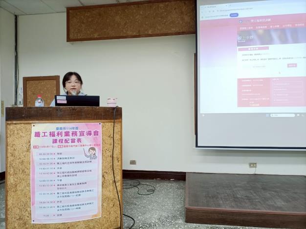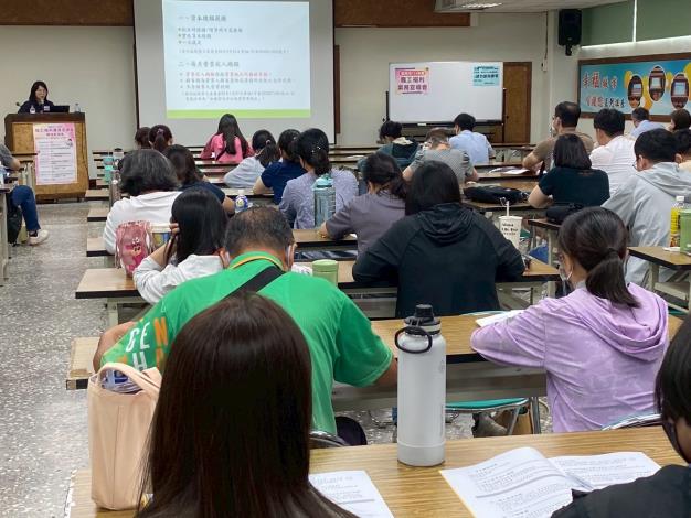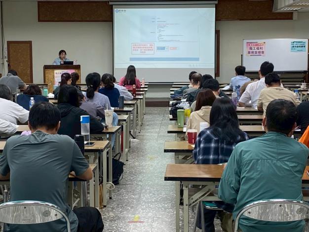 此次宣導會針對本市如何善用有限資源,發揮「小而美」的精神辦理員工福利,並教導事業單位如何正確操作線上申報系統。勞工局特別邀請勞動部勞動福祉退休司專員柯惠淳,與職工福利線上申報委外開發廠商皓展資訊股份有限公司經理謝依庭,進行實務操作與法規解析。