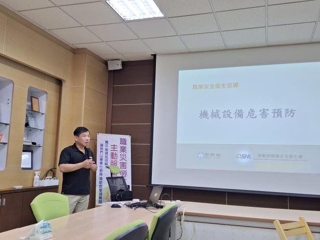 本次訓練特別邀請南區職業安全衛生中心黃水添技正擔任講師,進行「危險性機械設備危害預防與實務分享」及「危害鑑別與風險評估實務訓練」兩大課程。黃技正透過實際職災案例,講解機械設備危害點與防護措施,加深學員對潛在風險的認識與處置能力,並強調風險評估在預防災害中的關鍵角色。下午場次由嘉南藥理大學退休教授鄭世岳帶領的專業技師團隊授課,針對職場健康衛生議題進行全方位講解,內容涵蓋人因工程、異常工作負荷、母性保護與職場不法侵害預防等,協助事業單位建立健全的健康管理制度與職場友善文化。現場亦設有健康服務攤位,由專業護理人員提供勞工健康促進與職業病預防諮詢,增進勞工福祉。