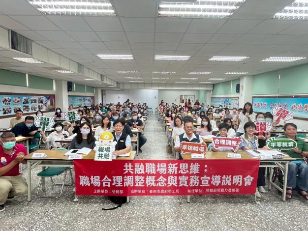 台南市政府勞工局今(3)日與勞動部攜手合作,於南門勞工育樂中心舉辦「共融職場新思維:職場合理調整概念與實務推廣」宣導說明會,推動職場共融以及落實「職場合理調整」理念,邀集企業、勞政機關、職業重建專業人員及身心障礙者逾百人參加,勞動部勞動力發展署雲嘉南分署長劉邦棟也特別蒞臨現場,表達對此次活動的重視與支持。透過專業課程、案例分享及當事人經驗交流,強化各界對合理調整的認識與應用。