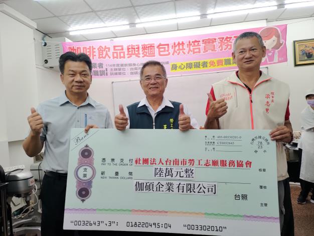 伽碩職訓執行長郭明洽表示,長年舉辦的義賣活動已累積在地好口碑,義賣不僅是學員展現技能的舞台,也讓他們被更多人看見,最終義賣所得累積至6萬元,全數捐贈予台南市勞工志願服務協會,用於協助弱勢族群改善居住環境,透過「學習—展現—回饋」的循環,學員的訓練成果不僅發揮在專業技能上,更進一步轉化為社會關懷的力量。