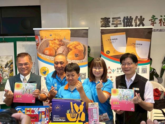 中秋佳節將近,台南市政府勞工局今(11)日特別舉辦「集愛中秋-蛇耀溫情庇護禮」庇護工場中秋禮品行銷記者會,邀集勞動部勞動力發展署雲嘉南分署長劉邦棟、轄內五大總工會及多家企業貴賓出席場面熱鬧溫馨,現場由局長與貴賓共同抽出庇護工場各場所推出象徵金蛇年好運的產品卡,正式揭開庇護工場中秋禮盒行銷序幕,期盼藉此推廣庇護商品,展現支持身心障礙朋友穩定就業的行動力,讓台南成為處處有情的「希望家園」。
