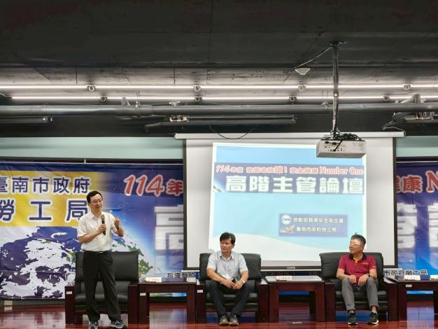 今日高階主管論壇邀請到勞動部職業安全衛生署李柏昌副署長擔任引言人,及三位與談人勞動部職業安全衛生署南區職業安全衛生中心林棓司副主任、新舜營造有限公司張憲仁技術總監、大成工程股份有限公司鍾寬達經理,期望與會單位就「災後企業持續營運管理之職安策略探討」從中央地方攜手、公私協力合作的角度來瞭解政府及企業在丹娜絲颱風災後,積極投入重建工程及復原的各項作為。