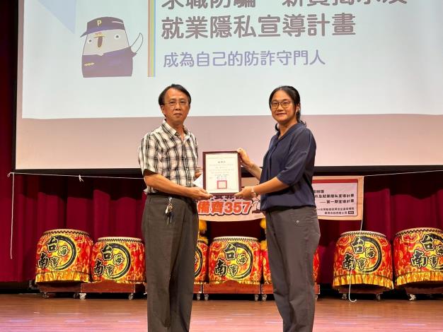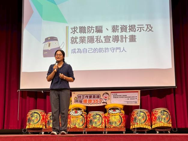 臺南海事學校實習處胡弘仁實習主任表示,有鑑於開學後,學生求職工讀遭遇詐騙的案例層出不窮,特別與臺南市政府勞工局合作,宣講講座第二站接續航進本市臺南海事高級學校,特別邀請本市警察局犯罪預防科警官擔任講師,為該校學生在開學後打工如何避免學生遭受不良僱主的騙術,加強年輕朋友對於求職防騙及就業隱私的正確觀念,灌輸青年學子薪資需公開示揭示,非必要不需提供就業隱私給雇主,用貼近年輕學子的語言,以影音及實際案例加以分享,此次宣導講座前進臺南高商校園辦理宣導,校方特別聚集該校學生計約600人,於該校樂群館擴大辦理宣導講座,講師透過實際案例講述求職防騙、薪資揭示及就業隱私等求職面試需注意事項,讓該校青年學子可以面對求職打工面試時,能夠提防小心注意面對不良雇主的各式花招,宣講課程除以實際案例配搭求職防騙3必問5必看及7不做等口訣加以宣導,勞工局為與學生進行互動,準備了有相當多宣導小物,配搭進行有獎徵答,讓宣導講座不再流於枯燥乏味,全體師生好評不斷。