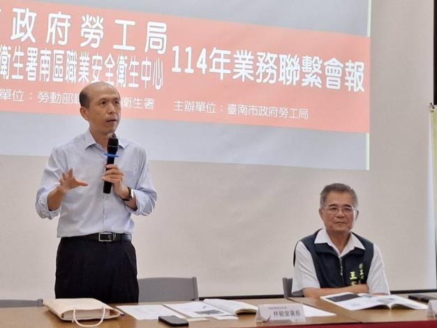 為落實黃偉哲市長打造「希望家園」願景,加強事業單位職業安全衛生意識,促進產官之間的交流與合作,臺南市政府勞工局與勞動部職業安全衛生署南區職業安全衛生中心(以下簡稱南區職安中心)每季共同辦理業務聯繫會報,此次於114年9月25日(四)假經濟部官田產業園區服務中心產業行銷中心辦理職業安全衛生業務聯繫會報。