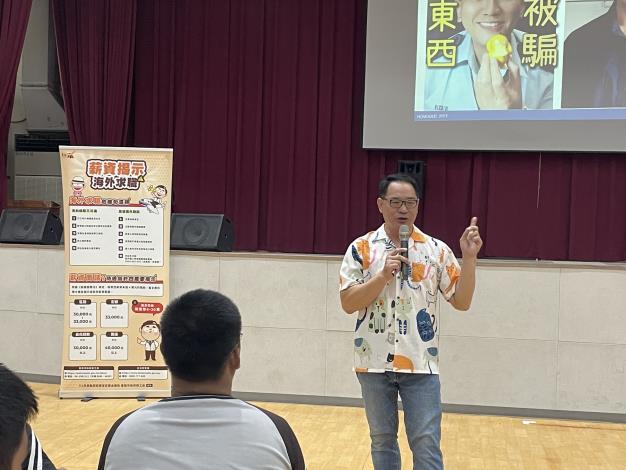 曹仁豪講師於本次宣講透過實際案例講述求職防騙、薪資揭示及就業隱私等求職面試需注意事項,讓青年學子可以面對求職打工面試時,能夠提防小心注意面對不良雇主的各式花招,宣講課程除以實際案例配搭求職防騙3必問5必看及7不做等口訣加以宣導,講座為與學生貼近進行互動,配搭進行有獎徵答及滿意度調查,發送各式文創小物讓宣導講座不再流於枯燥乏味,全體師生好評不斷。