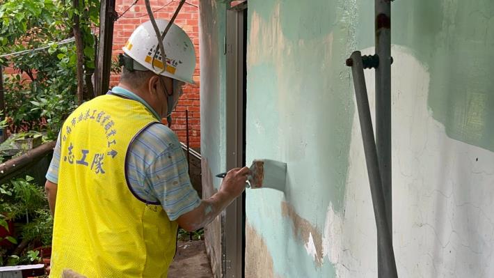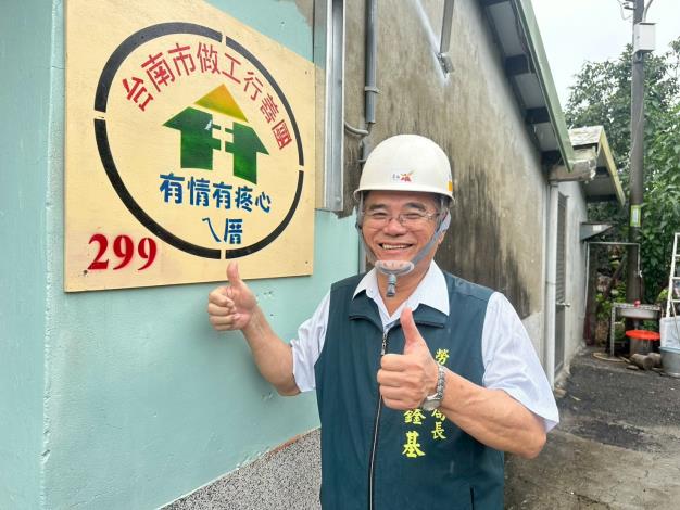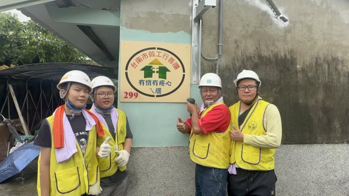 勞工局王鑫基局長表示雖然遇到颱風天停班停課,但志工願意出勤,精神令人讚佩。今日仍有多組家庭志工參與服務,包括志願服務協會夫妻檔:梁志男與林佳香;楊伯池與陳秀琴;陳來發與苑秀芳;陳明光與陳淑容;曹至清與陳雪惠;李俊平與陳美華;黃吉利與吳秋美;莊志偉與謝芬蘭,油漆工會夫妻檔薛志強與李美瑩;鍾得道與羅月秀;李美芬與李建達姐弟檔;吳福鐘、吳家元、吳泓昇、吳泓彬祖孫三代,一同行善傳愛。做工行善團的志工們犧牲假日,接力為弱勢家庭修繕,致力讓臺南市成為「有情有疼心」的城市,今日完成第299戶的房屋修繕,無私奉獻著實令人敬佩。案家看到房屋逐步的修建完成,臉上也嶄露了笑容,這對市府團隊和志工而言是最美的無聲肯定。後續市府團隊仍會持續努力,讓更多的弱勢朋友不僅能住得安心,亦能在政府的扶助下打造自己的「希望家園」。