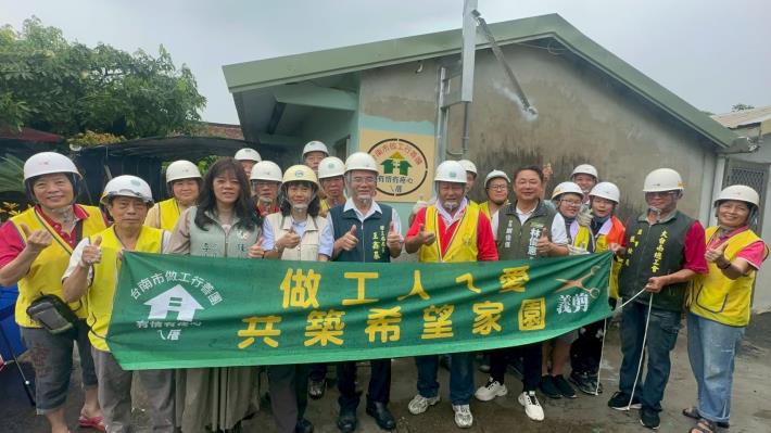 王姓身心障礙個案居住於麻豆區的老舊屋瓦房,與領有身心障礙手冊兒子及妻子居住,長年居住在屋況不佳的老屋中,老屋逢雨必漏。該戶屬於低收入戶,無力負擔修繕所需費用。做工行善團場勘後隨即展開修繕工程:電子加工工會鐵厝完工、電氣工會完成電線管路配置及電燈安裝、鋁製品工會完成鋁門窗安裝、泥水工會已完成泥水地坪及牆面修補、木工工會完成屋內裝潢施工及安裝塑膠地板、正懿公司木門安裝。今日油漆工會志工進行牆壁粉刷美化,大台南總工會監張松茂也到場幫忙,歷經多個工會志工接力修繕後,順利完成房屋重建,成為「做工行善團」第299戶修繕完成的案件,再次展現臺南「有情有疼心」的城市溫度。林俊憲立委及陳秋宏議員服務團隊、麻豆區公所團隊也帶來飲品慰勞志工辛勞。