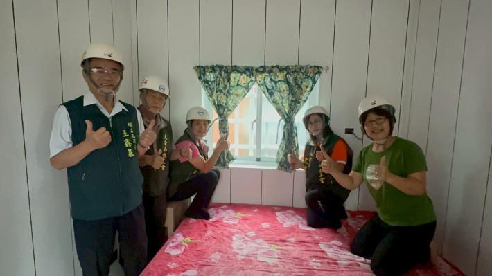鹽水區本次修繕案的陳姓案主,長年獨力照顧兒子,生活全靠政府補助,無力整修年久失修的老屋。經過做工行善團各工會成員進場協助,至上週末已大致完成主要施作工程。後寮社區發展協會郭美月理事長今日也到場關懷。