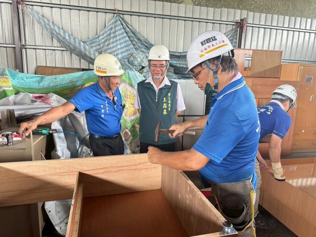 此外,台南市木工業職業工會志工更前往官田區隆田陸橋下二手家具倉庫,組裝並翻新可用家具,化舊為新,並在屋修完成後親送床板作為溫馨又實用的入厝禮,讓這個家庭在逆境中感受到社會的溫暖。