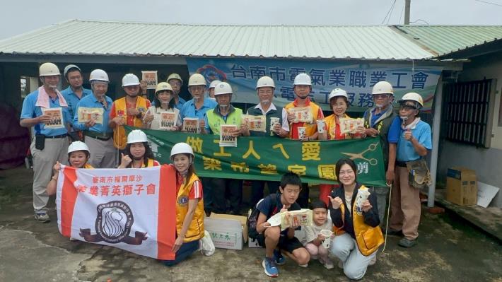 七股區金姓案主為79年次低收入戶,雙親早逝,與77年次從事送貨工作的哥哥同住,靠微薄薪資與政府生活津貼支撐生活。「做工行善團」接獲民政局及區公所通報後迅速到場勘查,積極安排各項修繕工項。7月25日由電氣工會進行斷電與臨時電設作業,7月30日泥水工會完成屋頂拆除及清運,7月31日電子機械加工工會接續進行屋頂鐵皮施作,今日(8月3日)則由電氣工會進行室內配線與開關安裝,修繕進度順利。臺南市福爾摩沙美業菁英獅子會創會長鄭玉娟(大台南總工會理事)及該獅子會獅友等人也準備伴手禮及綠豆湯等餐點到修繕案場慰勞志工。