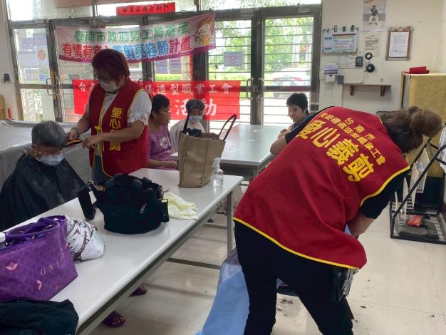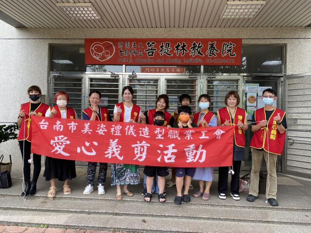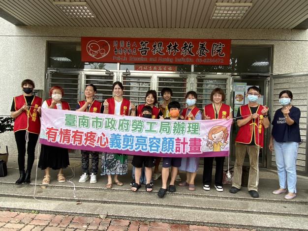 臺南市政府勞工局響應黃偉哲市長「希望家園」的願景,用行動關心弱勢族群,今日(8/5)勞工局媒合台南市美姿禮儀造型職業工會前往柳營區菩提林教養院,為院內院生提供免費理髮服務。