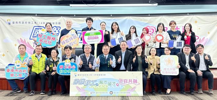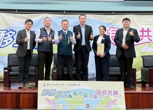 為讓移工能安心在臺南工作服務,落實黃偉哲市長「希望家園」理念,臺南市政府勞工局與國立成功大學社會科學院今(5)日假關子嶺勞工育樂中心共同辦理「114年度論壇活動-國際移工的育才、留才與包容共融」,透過產官學跨域合作,共同探討臺灣移工政策、健康照護及科技應用之最新趨勢。