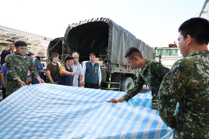 台南市長黃偉哲今(18)日前往鹽水區視察災後復原進度,探視協助救災的國軍、志工與災後臨時工人力,逐一致意並表達感謝之意。期間也於公所聆聽多位民眾反映風災帶來的實際困境,現場指示相關單位儘速協助。