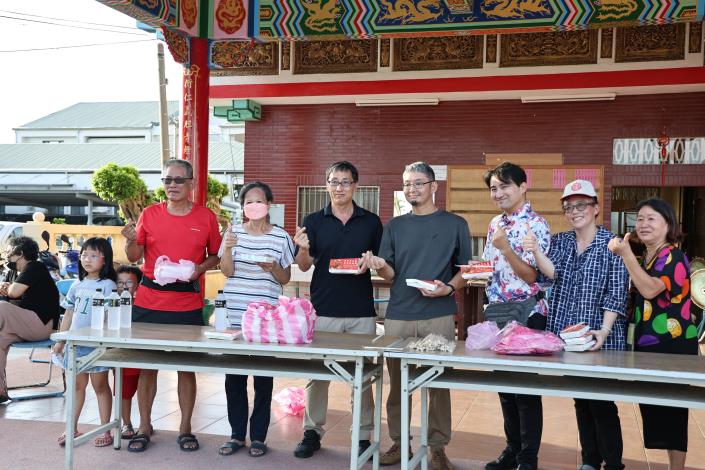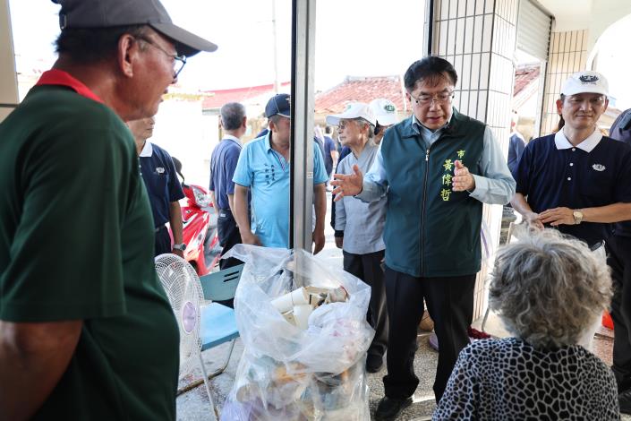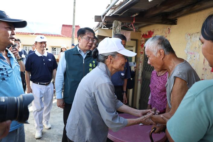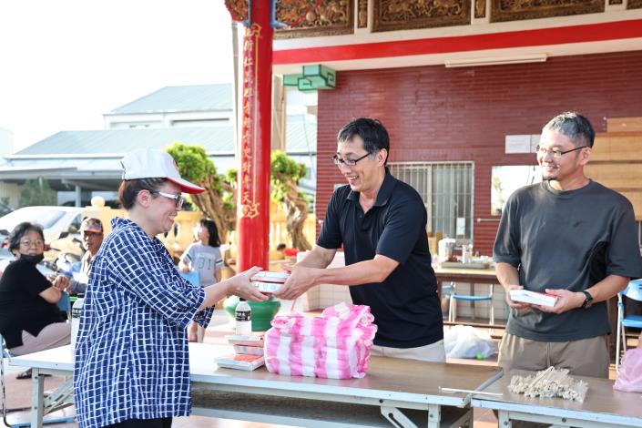 黃偉哲隨後前往七股城內,向正在現場提供熱食便當給災民的野崎孝男先生致意,感謝他長期關懷台灣,這次更親自深入災區,以實際行動溫暖人心。