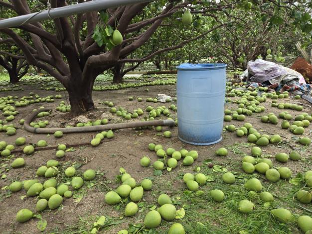 農業局進一步表示,目前仍有未處理的落果,其中部分將由農友自行使用除草攪碎機處理,將其轉化為天然肥料回歸土地,達到永續利用的目的。若仍有需要協助清運的部分,農業局也將協調公所及清潔隊協助處理。