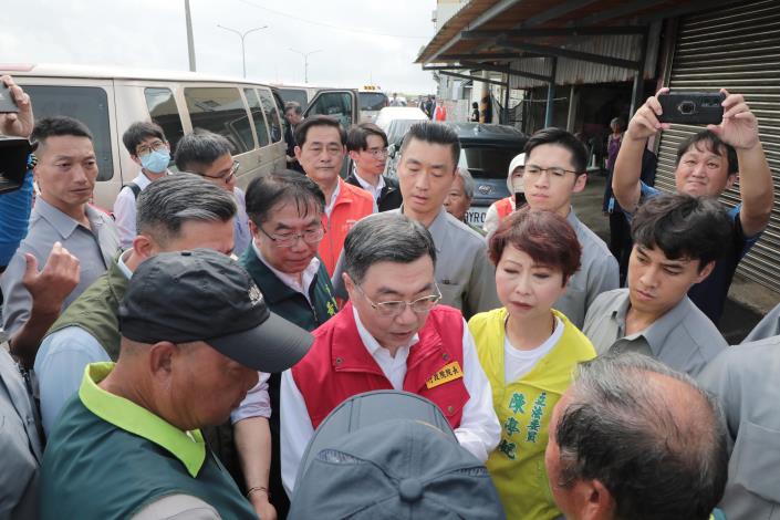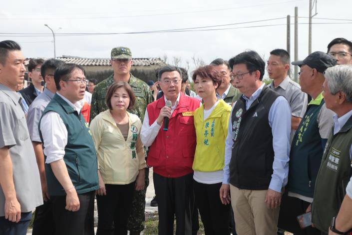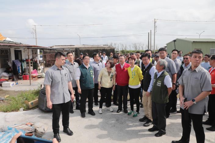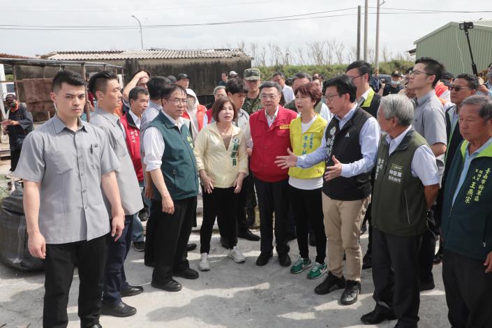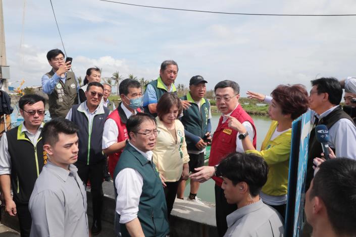 今日勘災行程包括內政部長劉世芳、行政院秘書長龔明鑫、行政院發言人李慧芝、雲嘉南區聯合服務中心執行長劉米山、立法委員王定宇、郭國文、陳亭妃、賴惠員、市議員蔡秋蘭、余柷青、朱正軒出席,立委謝龍介、林俊憲也派代表到場表達關切。