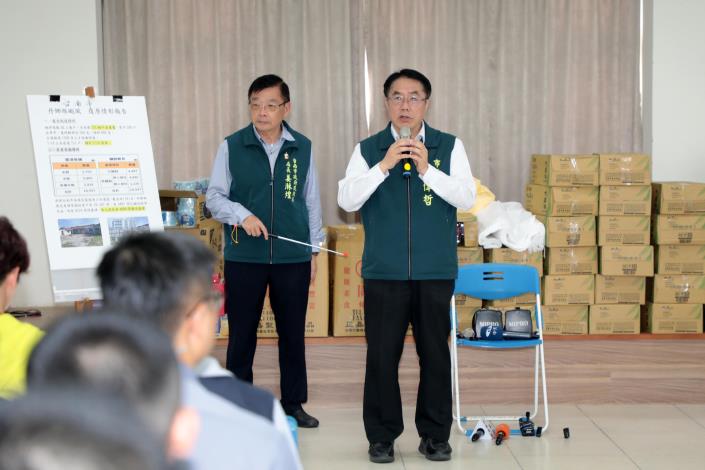 行政院長卓榮泰指出,此次風災重創台南,對於第一時間投入救災的所有人員,他致上深深謝意,尤其提及台電人員不眠不休地搶修,他更是特別表達感謝,同時也謝謝國軍、替代役的支援協助,並肯定黃市長在災後即時應變與危機處理能力。