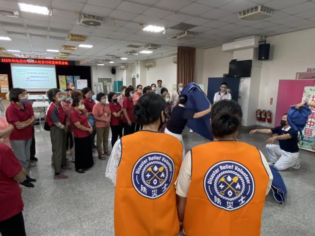 除了與校園合作,社區防救災的量能更是不容忽視,公所於9月26日下午辦理防救災志工教育訓練及避難收容處所實作演練,邀請佛教慈濟慈善事業基金會講師指導轄內防救災志工團隊、防災協作中心志工團隊、防災士及個人志工等合作參與避難收容處所開設演練,並採用活潑有趣的分組討論方式,讓志工們依據不同情境規劃設計避難收容處所的布置及動線,並實際操作福慧床及福慧隔屏展開架設,充實及強化志工夥伴的防救災知能。