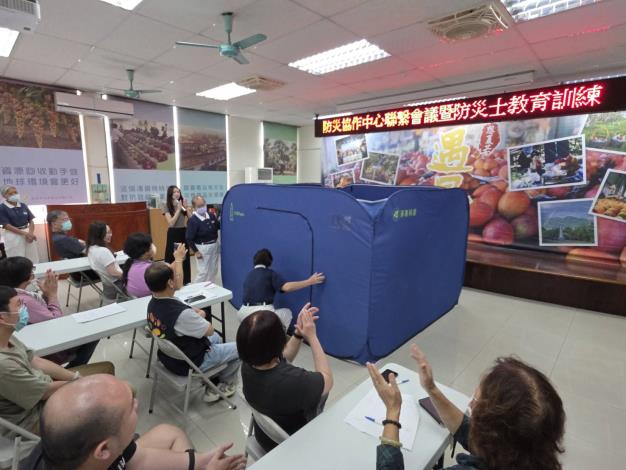 課程規劃涵蓋避難收容處所開設與營運,由於大規模災害下可能出現大量災民收容之情形,為確保未來在面臨複數收容處所開設時之人力需求,透過讓協作中心志工動手操作福慧隔屏及填報收容登記表的方式,讓志工熟悉避難收容作業,由防災志工補充不足之人力缺口,以因應大規模災害發生時多處避難收容處所同時開設導致區公所人力不足的情形。