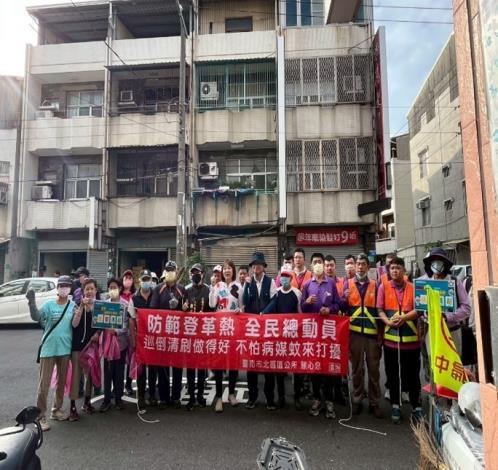 北區公所為避免社區感染風險增加,迅即啟動防疫應變作為,除每週定期召開區級防疫會議,另外自主辦理四週的「防疫清潔日」,動員區公所、里長、環保志義工及居民,針對確診者居住里及周遭里別,進行環境整理及孳生源清除。