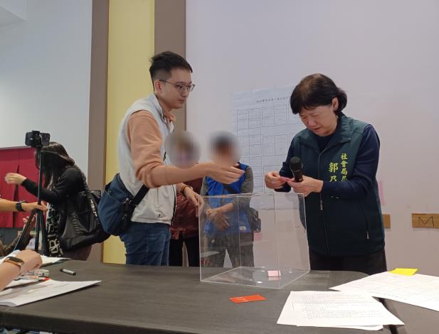 今日抽籤前,社會局郭乃文局長先跟現場參與抽籤住民明本次抽籤相關規範,現場安排專責社工,為每一戶災民提供南水署房型規劃,確保住民能清楚了解南水署宿舍的設施、搬遷流程以及入住後的注意事項。