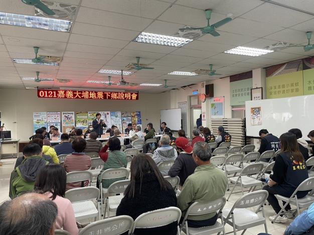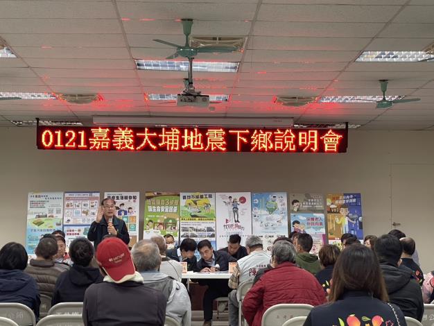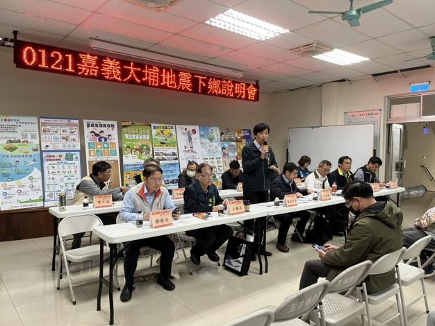 本(22)日臺南市副市長葉澤山率南市府團隊主管前進玉井、楠西、南化及東山等四區辦理「嘉義大埔 0121震災說明會」由向民眾說明修復重建、租金補貼、貸款優惠等協助方案,並回答民眾所提的問題。