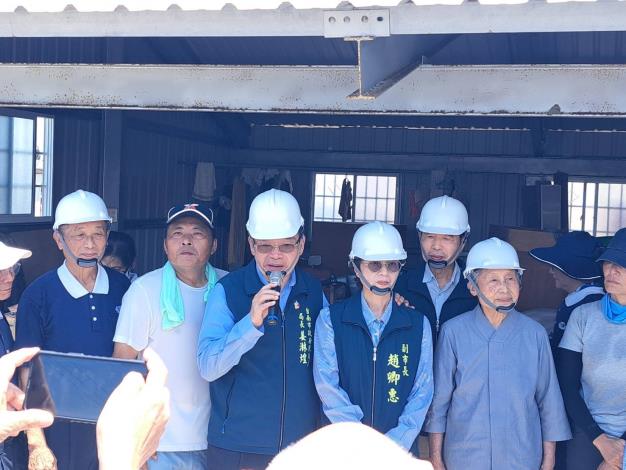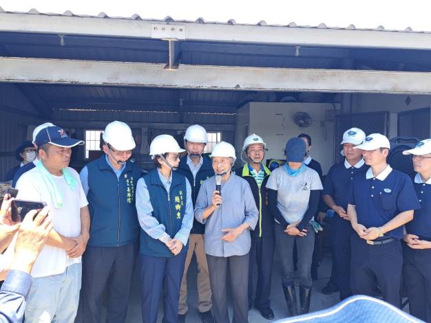 姜局長在現場除關心居民需求外,更積極協助聯繫慈濟基金會、國軍、替代役、志工與社會局、水利局等單位,加速抽水機調度、清理家園與加蓋帆布等工作。姜局長也保證,市府一定會陪災民一起走完重建的最後一哩路。