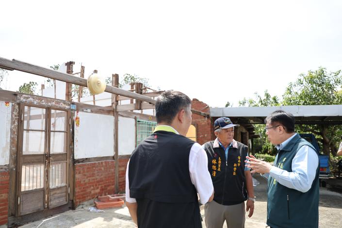 他呼籲民眾如屋頂受損,可先以帆布覆蓋防止二次損害,後續修繕費用可向區公所申報,市府將補助經費協助災後修復。同時也提醒市民,屋內毀損物品及容器、屋外水溝請盡速清理積水,防範登革熱疫情發生。