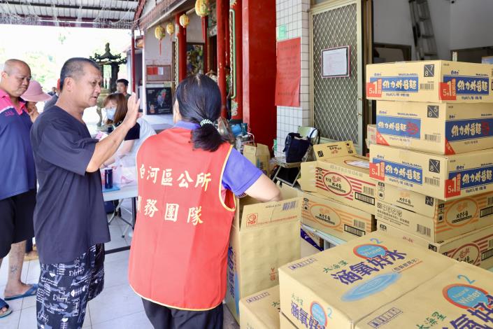 在白河區也有多個里遭遇嚴重災情,停電停水、建物與公共設施損毀嚴重,甚至有數個里連續停電超過5日,嚴重影響交通與居民日常生活。區長董麗華說,目前白河區約95%地區已完成復電,感謝台電努力搶修與鄉親耐心配合,也感謝國軍部隊支援清理,白河清潔隊與搶險契約廠商也積極投入排除障礙物。白河區公所此次災後啟動收容安置機制,並設置多處關懷站就近提供災民生活物資,社會局亦調派沐浴車、公所也開放場地,讓災民能夠安心清潔、照料基本生活所需。