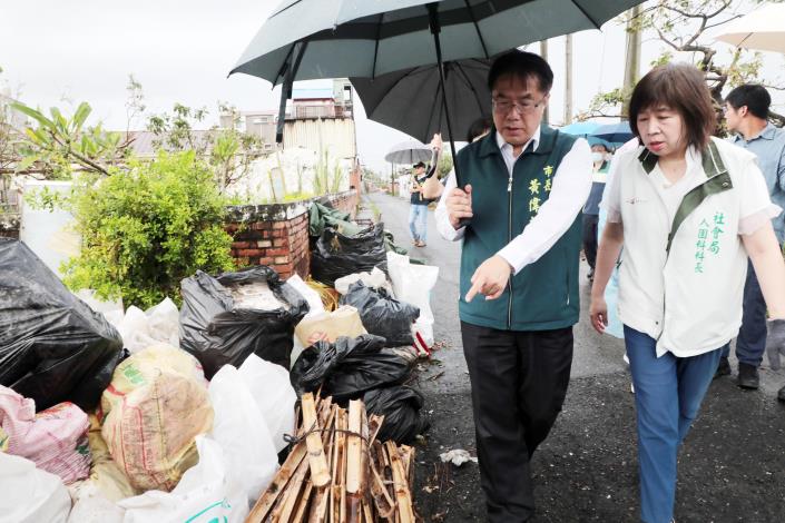 因應丹娜絲颱風侵襲造成台南多處地區災情,南市府除動員社工積極關懷弱勢災民外,亦迅速啟動志工媒合機制,號召志工投入災後復原與家園清理工作。市長黃偉哲今(15)日偕同社會局局長郭乃文、將軍區區長許博森及台南市後備指揮部指揮官上校林嘉申前往受災嚴重的將軍區北嘉社區,親自入宅關心災民、傾聽民眾訴求,並向投入救災的志工夥伴致謝,肯定他們無私奉獻、溫暖助人的行動。