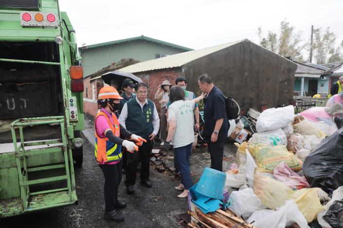 由於目前災區仍有部分長者獨居,黃偉哲於慰問民眾時特別指示,要求各公所務必留意並補充民眾日常所需用品(如食物、飲用水等),以確保基本民生需求。訪視期間恰逢垃圾車到場清運,黃偉哲亦親自協助搬運廢棄物上車,展現與市民同心、共同清理家園的決心。