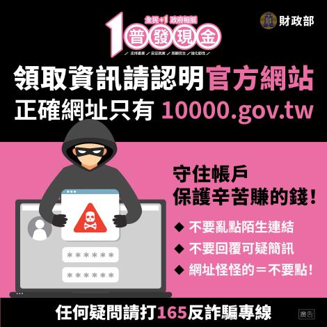 政府不會主動以簡訊或電子郵件通知領錢,也不會電話要求民眾至ATM轉帳,請以官方資訊為主,